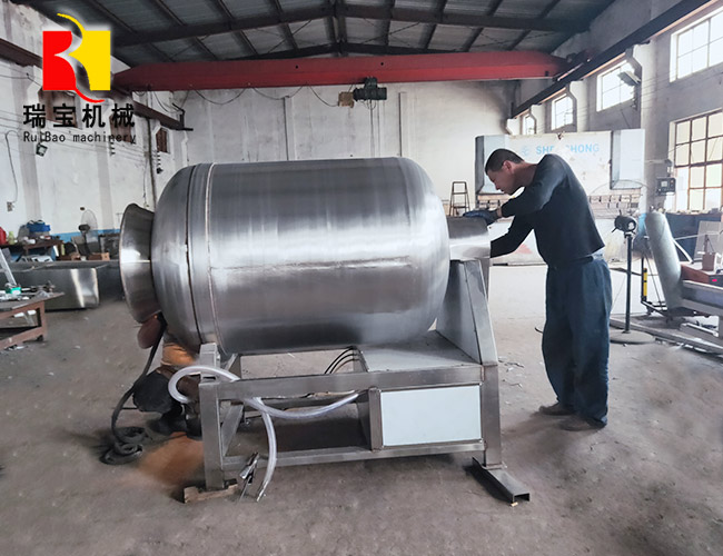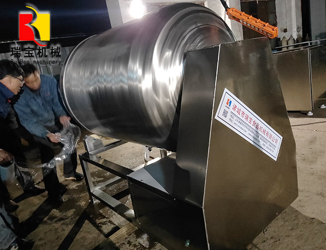 二,產品在真空狀態(tài)下滾揉會使產品在摩擦、摔打時減少熱量的產生。且在真空狀態(tài)下產品不會氧化。因此不會使產品在滾揉過程中變質