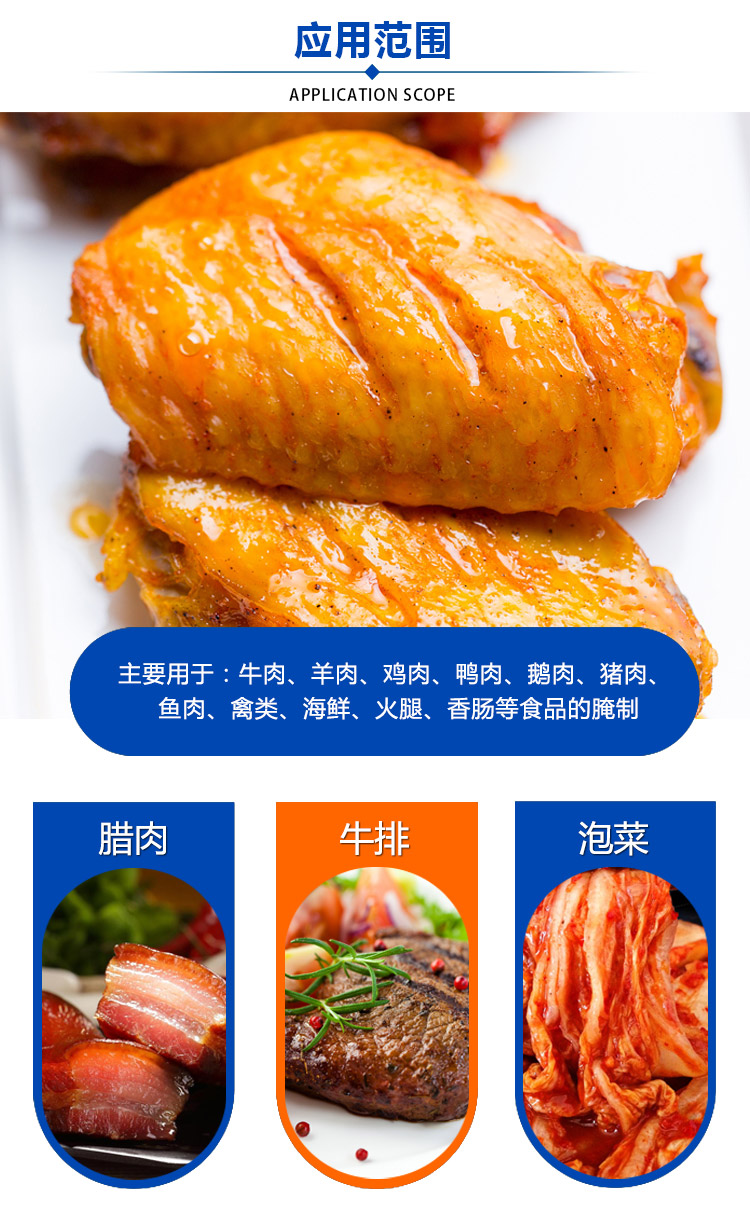 適用于加工火腿、肉腸、牛羊肉制品等肉類食品。通過滾揉,腌漬液能夠被有效吸收,肉質(zhì)結(jié)合力強(qiáng),截面承受力強(qiáng),保水性好,口感更鮮嫩、色澤自然美觀,可大大提高出品率,增強(qiáng)肉制品的高品位。