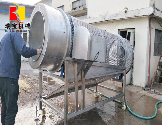 滾筒清洗機從機械結(jié)構(gòu)上來說,這類清洗機的主體滾筒,其轉(zhuǎn)動可以使?jié)L筒內(nèi)的物料自動翻滾?;ハ嗄Σ僚c筒壁發(fā)生摩擦作用,從而使表面污物剝離。但這些作用只是能把產(chǎn)品上的雜物、水分瀝干。